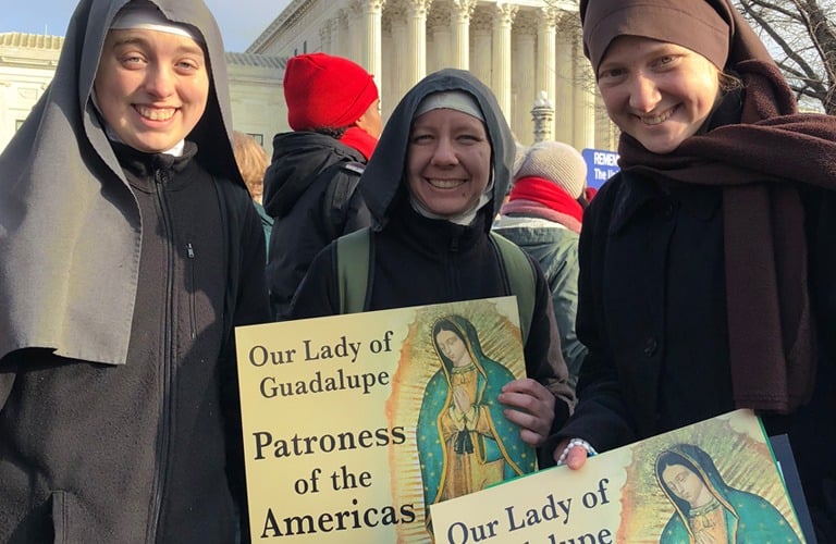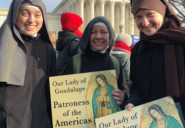 Consecration to Our Lady of Guadalupe- Our Lady of Guadalupe is the true Superior and Foundress of our community, and each sister is consecrated to her. An image of her is prominently displayed in each of our chapels, and we pray for her guidance in all of our important decisions. Since we are her Daughters, another of our apostolates is to spread devotion to her. We do this through prayer, education, and family events. Each year, the sisters pray a novena to her and invite others to join us for a rosary procession to the local abortion facility. On the ninth evening, there is a Mass and Fiesta on Our Lady's feast day!