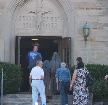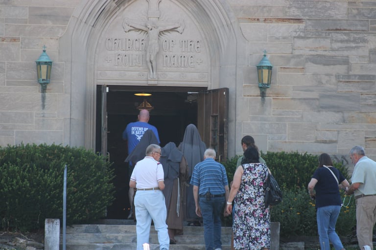 In addition to our daily prayers for the end of abortion, the sisters participate in the local pro-life Mass and prayer vigil every Saturday. Holy Name church is a local parish that is within walking distance of a planned parenthood facility. Pro-lifers have been praying at this parish for the end of abortion and the closing of PP for almost 40 years. Every Saturday, there is a Mass, adoration, a rosary procession down to the PP, and sometimes confessions, depending on the availability of our priests. You are welcome to join us!