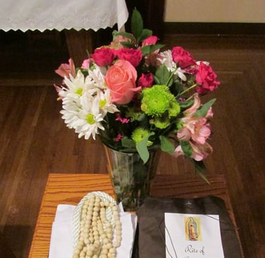 On Oct. 7th, 2011 Sr. Clare Marie of the Holy Eucharist was invested in the habit of our community, as she entered into the Novitiate stage of formation. At her Investiture ceremony, Sr. Clare consecrated herself to Our Lady of Guadalupe, the true Superior of our community. She received the medal of Our Lady of Guadalupe as a sign of her consecration. She was then tonsured, a total rejection of the vain things of the world, by willingly offering her one crowning beauty before she received our habit.